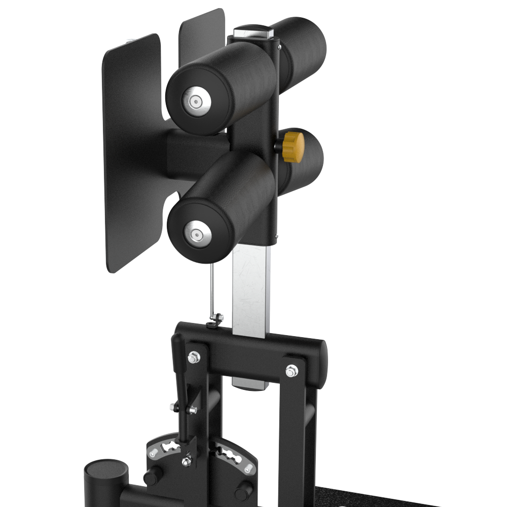 Extended side handles are ergonomically positioned to avoid interference during exercise while providing reliable assistance for mounting and dismounting. Dual rear ankle pads feature 3 adjustable distances to accommodate users with varying leg sizes, while the footplate offers 8 adjustable positions for different heights. Anti-slip foot platforms ensure safety during use. Resistance band pegs on both sides allow users to add progressive resistance at the end range of motion, increasing muscle tension and training effectiveness.